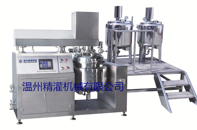 JGZRJ系列真空乳化攪拌機組在引進德國技術的基礎上不斷改進,是專業針對化妝品、藥膏類產品的制作工藝設計的。本機組主要由乳化罐、油罐、水罐、真空系統、液壓系統、電器控制等部分組成。本設備具有:以人為本的設計、簡潔的操作、緊湊的結構、穩定的性能、均質效果好、生產效益高、清潔維護方便、自動控制程度高等特點。